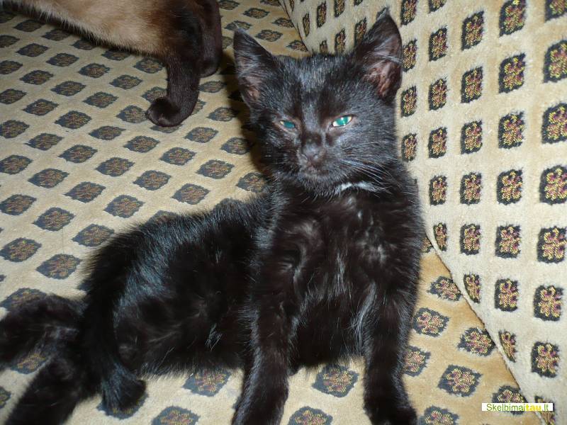 Maza, grazi, juoda su baltu slipsu, sveika, linksma, isaukleta katyte, 2menesio, iesko sau milinciu seimininku. Be kirminu, pripratinta prie dezutes. Lauksim jusu skambuciu. tel. 865642473.