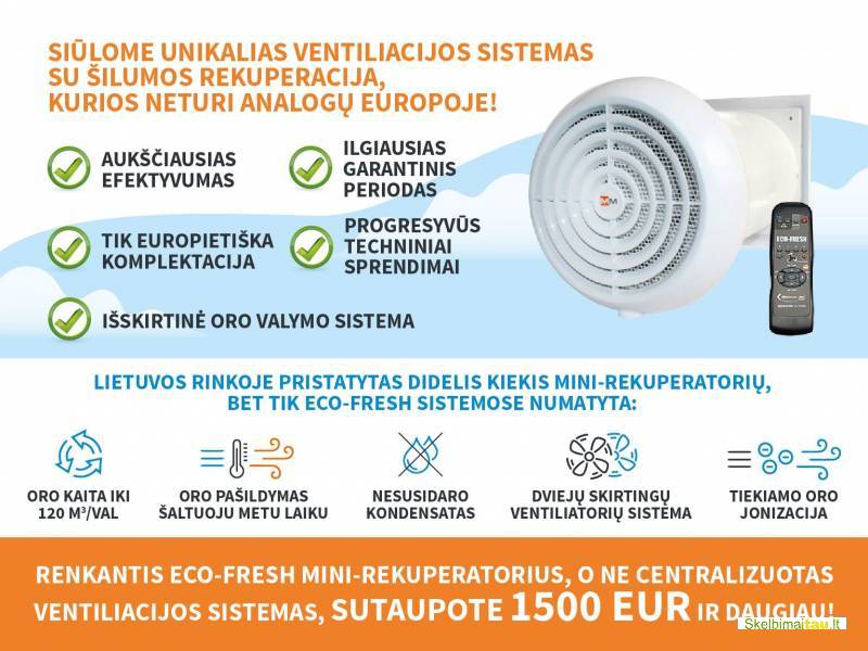 Todėl mūsų įmonė siūlo geriausius rinkoje mini rekuperatorius ECO-FRESH: