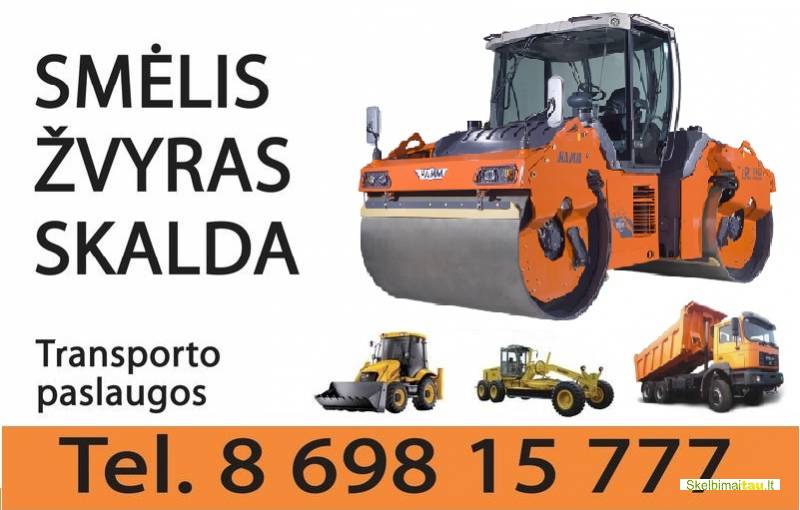 vibro volo, greiderio, ekskavatoriaus, buldozerio, savivarčio paslaugos. Vežame ir paruodame smėlį, žvyrą, skaldą, atsijas, asfalto drožles, statybinį laužą ir kitas birias medžiagas.