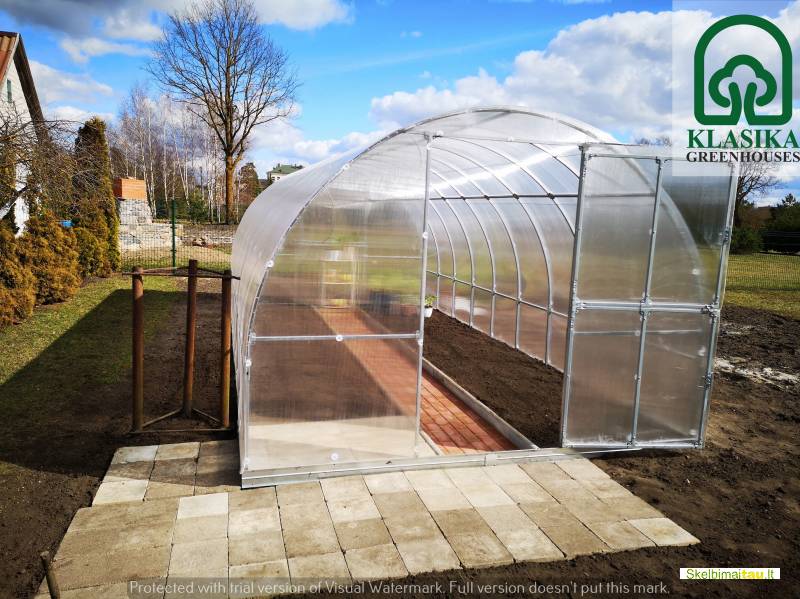 Standartiniai arkinio šiltnamio KLASIKA TUBE matmenys: plotis – 3m, ilgis, priklausomai nuo Jūsų poreikio, gali būti 4, 6, 8, 10 metrų ir t.t. (šiltnamis, pagal poreikį, ilginamas po 2 metrus), aukštis – 2,18m.