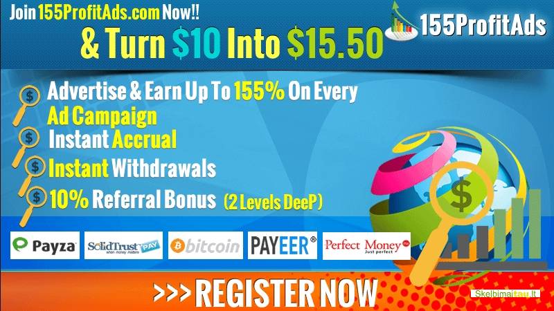Pristatau reklamos ir pajamų pasidalijimo programą - 155ProfitADS . Ši programa suteikia aukštos kokybės reklamos srautą į savo verslą internete ir tiems, kurie ieško būdų sukurti tvirtą interneto pajamų šaltinį.
